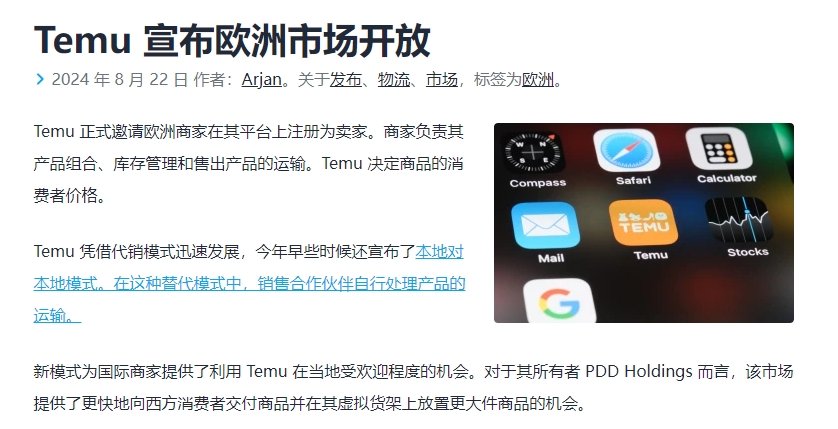 据报道,Temu 已正式向欧洲商家发出邀请,欢迎他们在其平台上注册成为卖家。在这种模式下,商家需要负责产品组合、库存管理以及售出产品的运输,而 Temu 则负责决定商品的消费者价格。