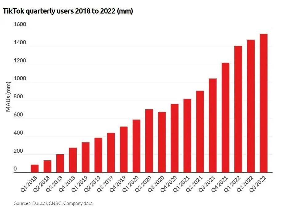 TikTok2018-2022年季度用户