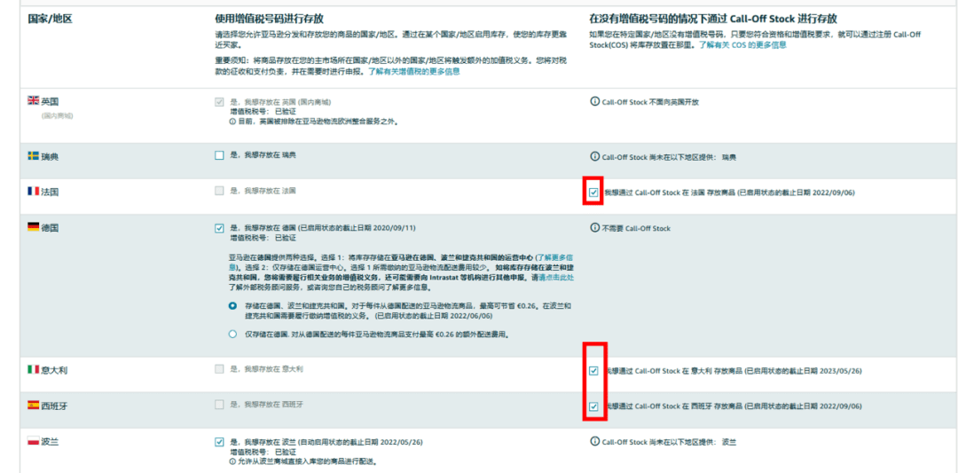 2.如果您有法国、意大利和西班牙中任意一国VAT号,则您可以通过COS开启Pan-EU,由亚马逊将库存存放在法国、意大利和西班牙,但是暂时无法存放在德国。德国作为COS库存放置国家,将在2023年后期开启。