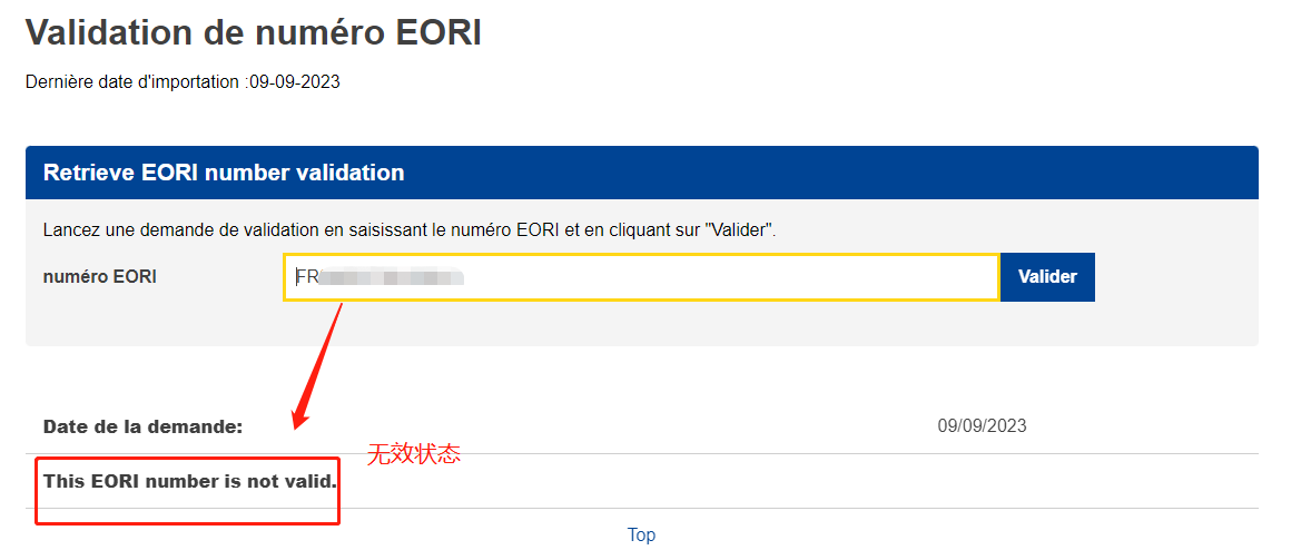 查询的EORI无效则显示“This EORI number is not valid”